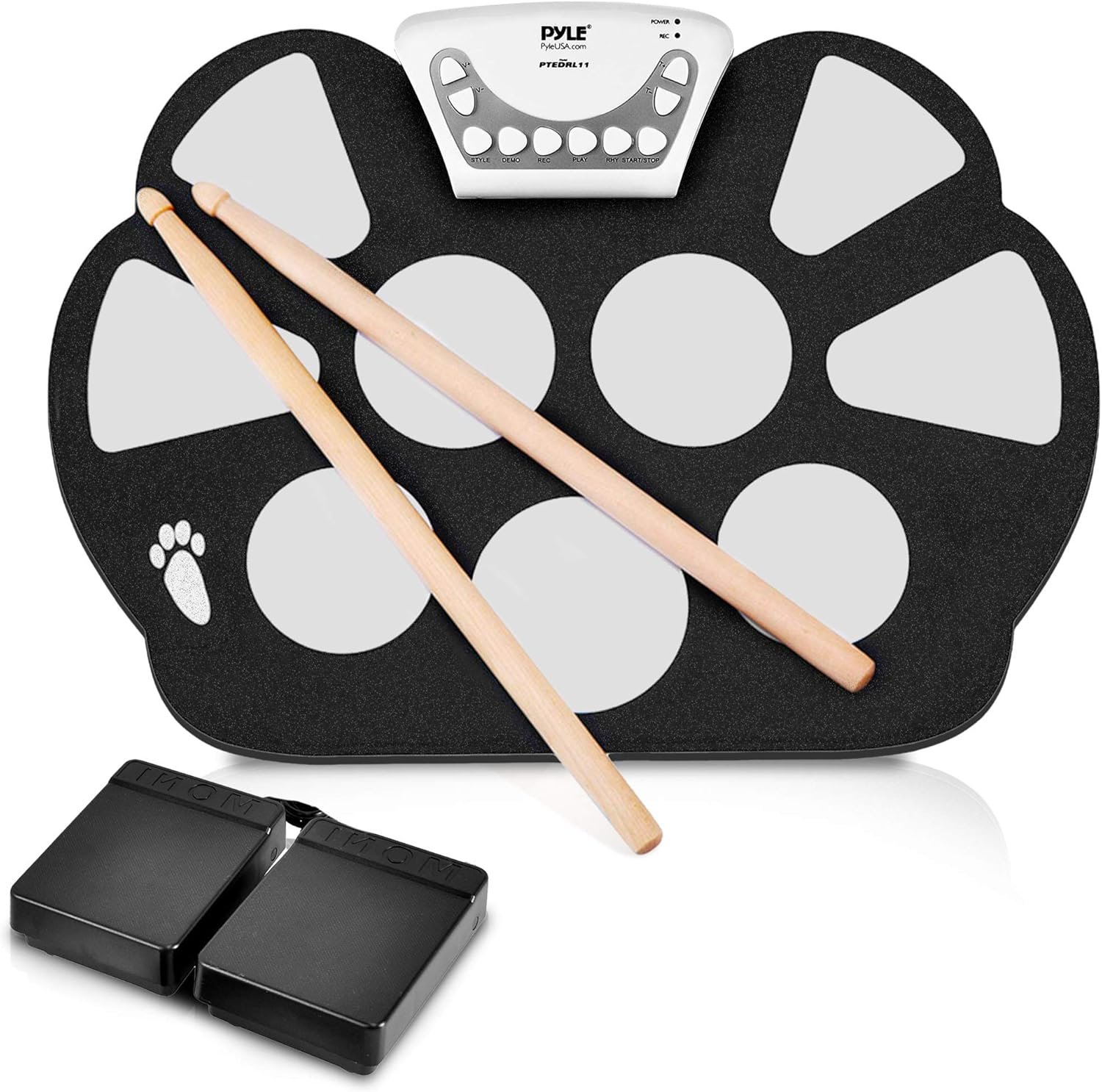 Pyle Compact & Ultra-Thin Portable Machine w/ 9 Electronic Pads, Foot Pedals, Drumsticks, & Power Supply Tabletop Roll Loaded W/Drum Electric Kits & Songs, Headphone Jack