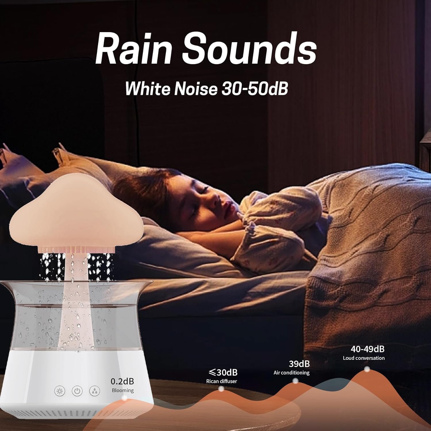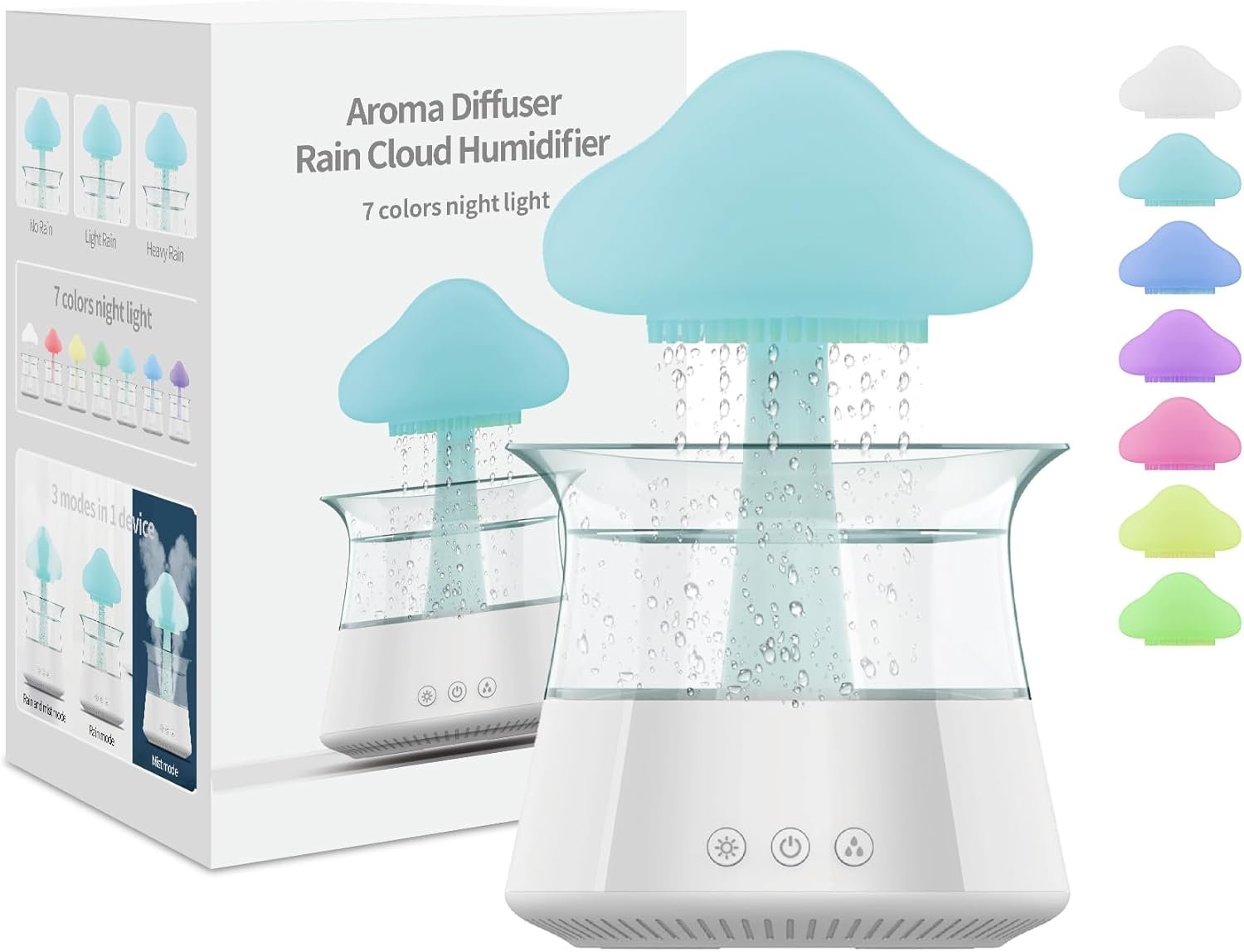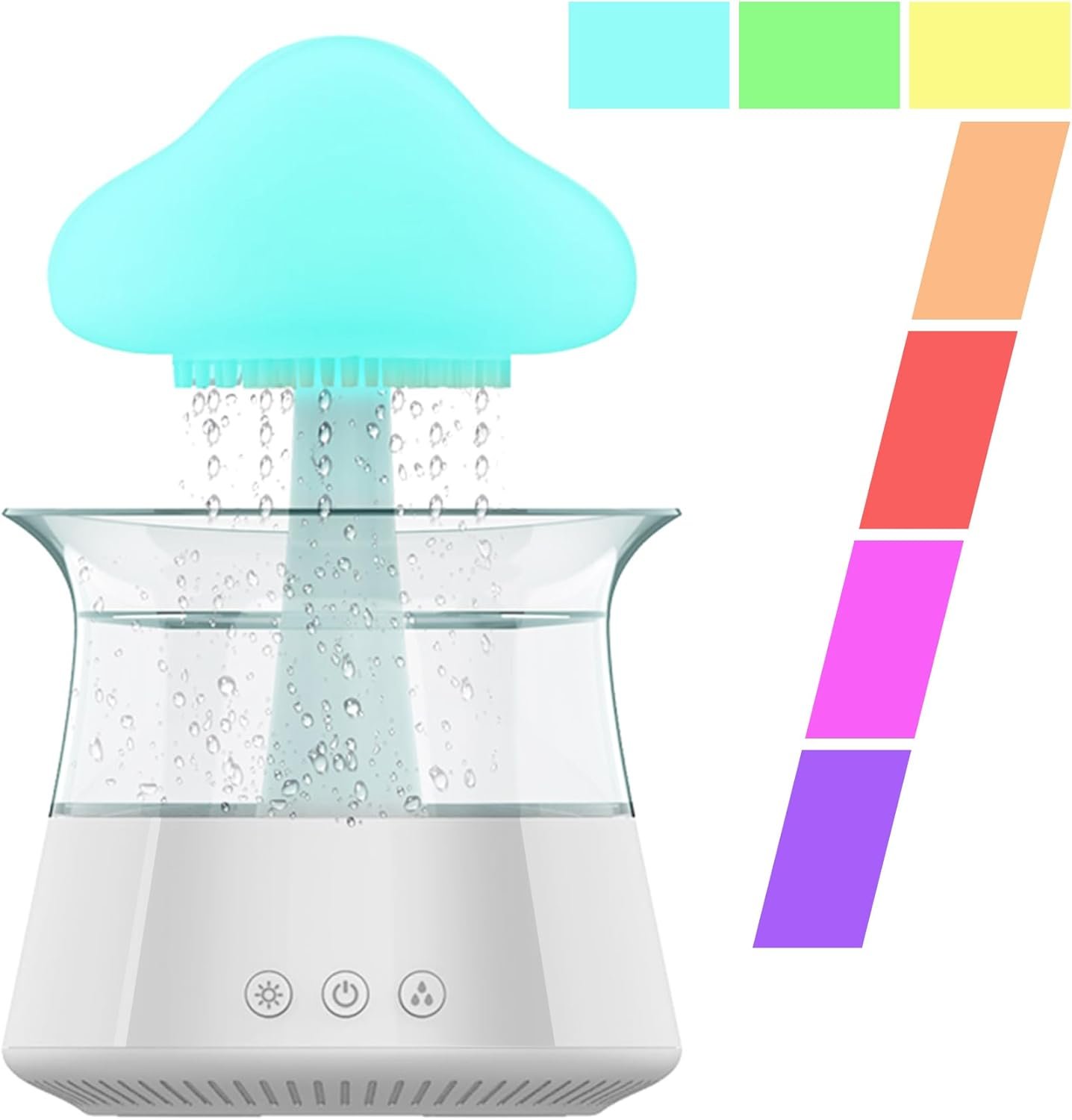 Rain Cloud Humidifier Water Drip – Mushroom Aroma Diffuser, Essential Oil Diffusers, 300ml White Noise Aromatherapy Diffusers with 7 Colors Cloud Lights for Home, Large Room, Office – White