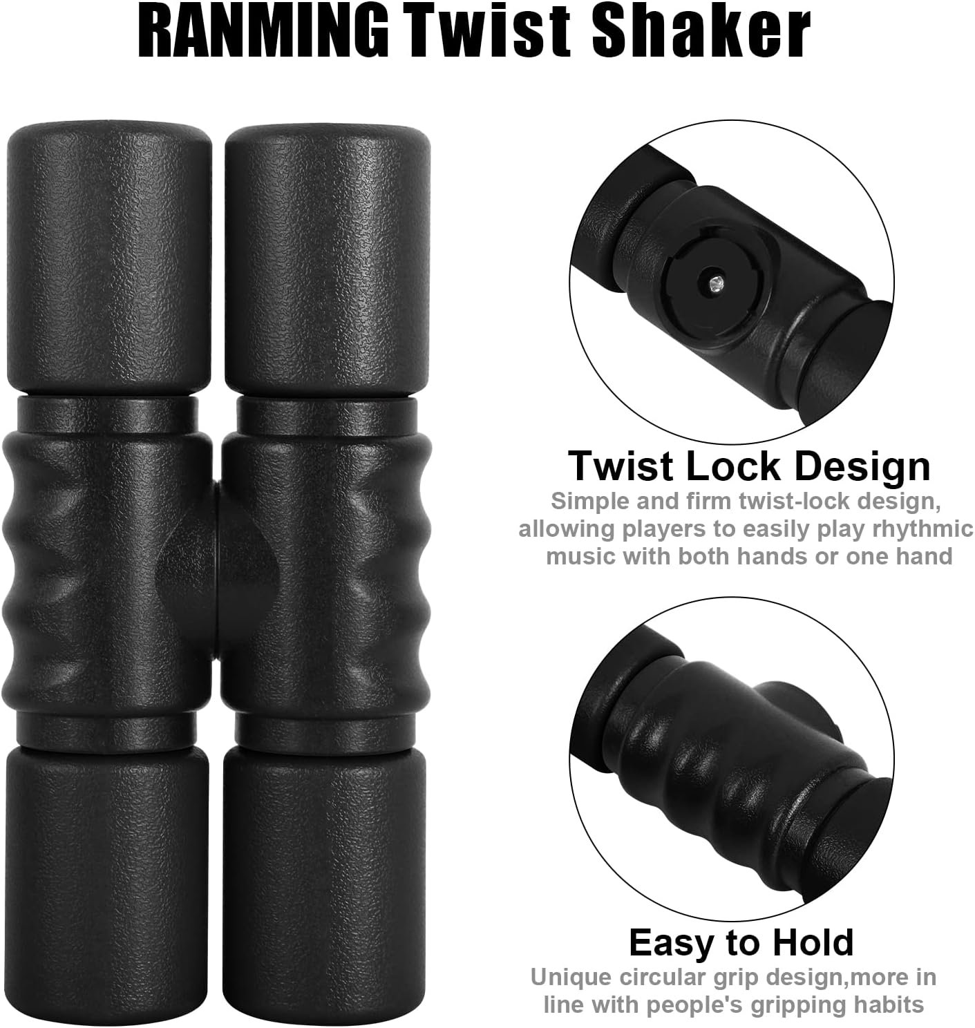 RANMING Twist Shaker ABS Double Row Shakers Percussion Instruments Medium Volumelatin Percussion Instruments for Accompaniment,Studio,Band,Drummers(Black)