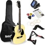RockJam Acoustic Guitar Kit with Stand, Tuner, Gig Bag, Strap, Picks, Spare Strings & Lessons