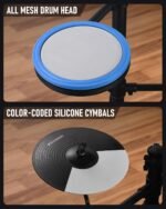 Rocksocki Electric Drum Set, Electronic Drum Kit for Beginner Junior with 180 Sounds, 4 Quiet Mesh Pads, 9″ Cymbals, USB MIDI, 2 Pedal, Throne, Headphones, Sticks