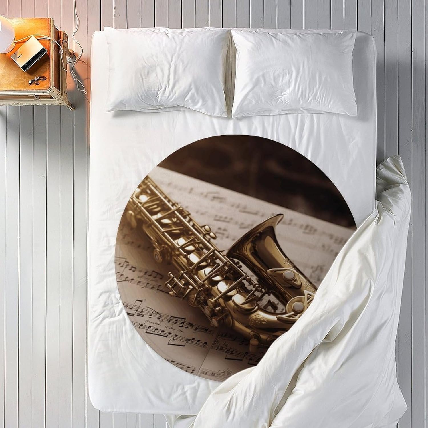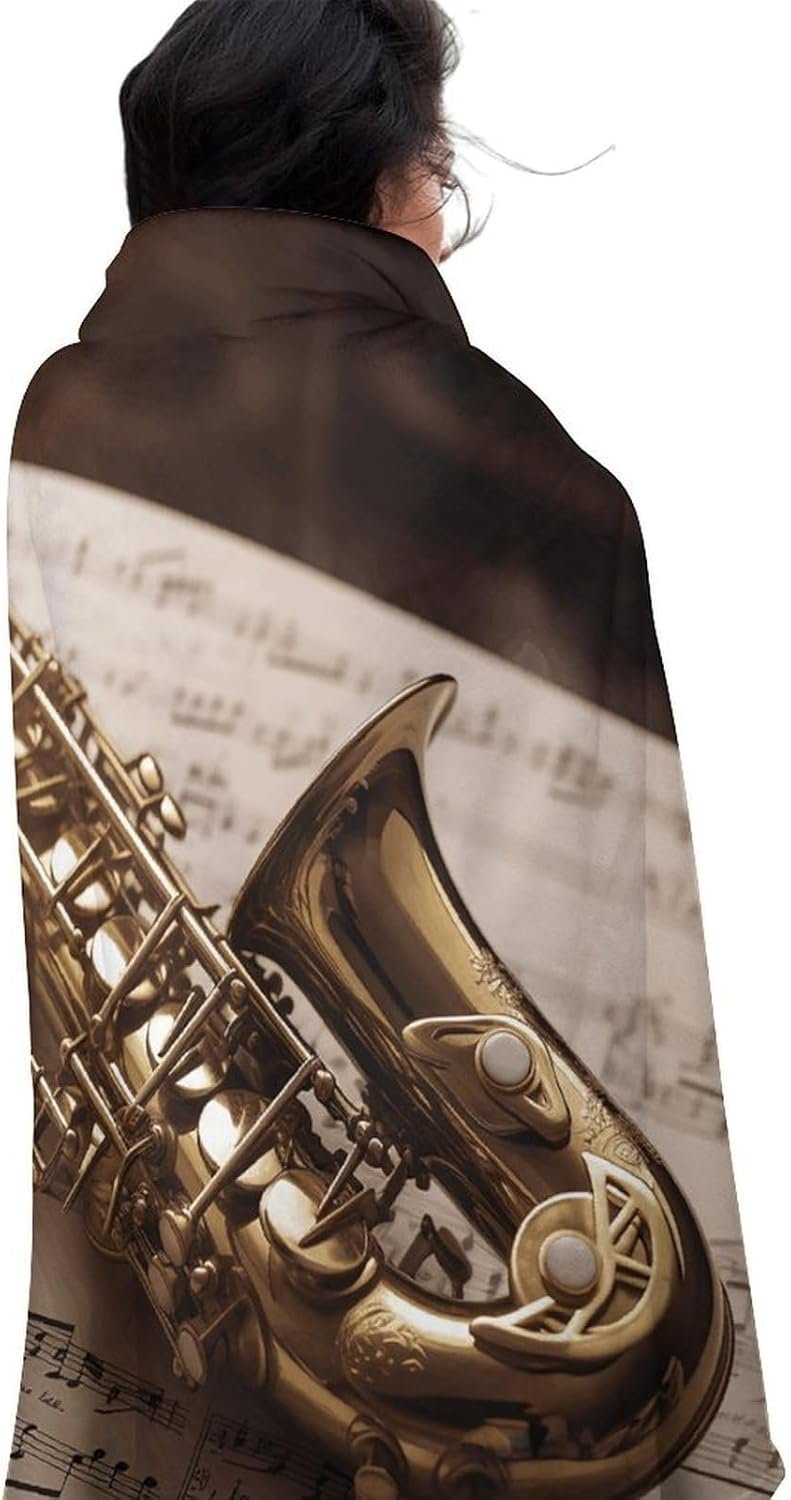 Round Flannel Blanket, Soft Fuzzy Anti-Pill 59 Inch Throw Blanket, Winter Bath Towel Saxophone on Sheet Music Yoga Mat for Bed, Couch & Outdoor Picnic – 300 GSM