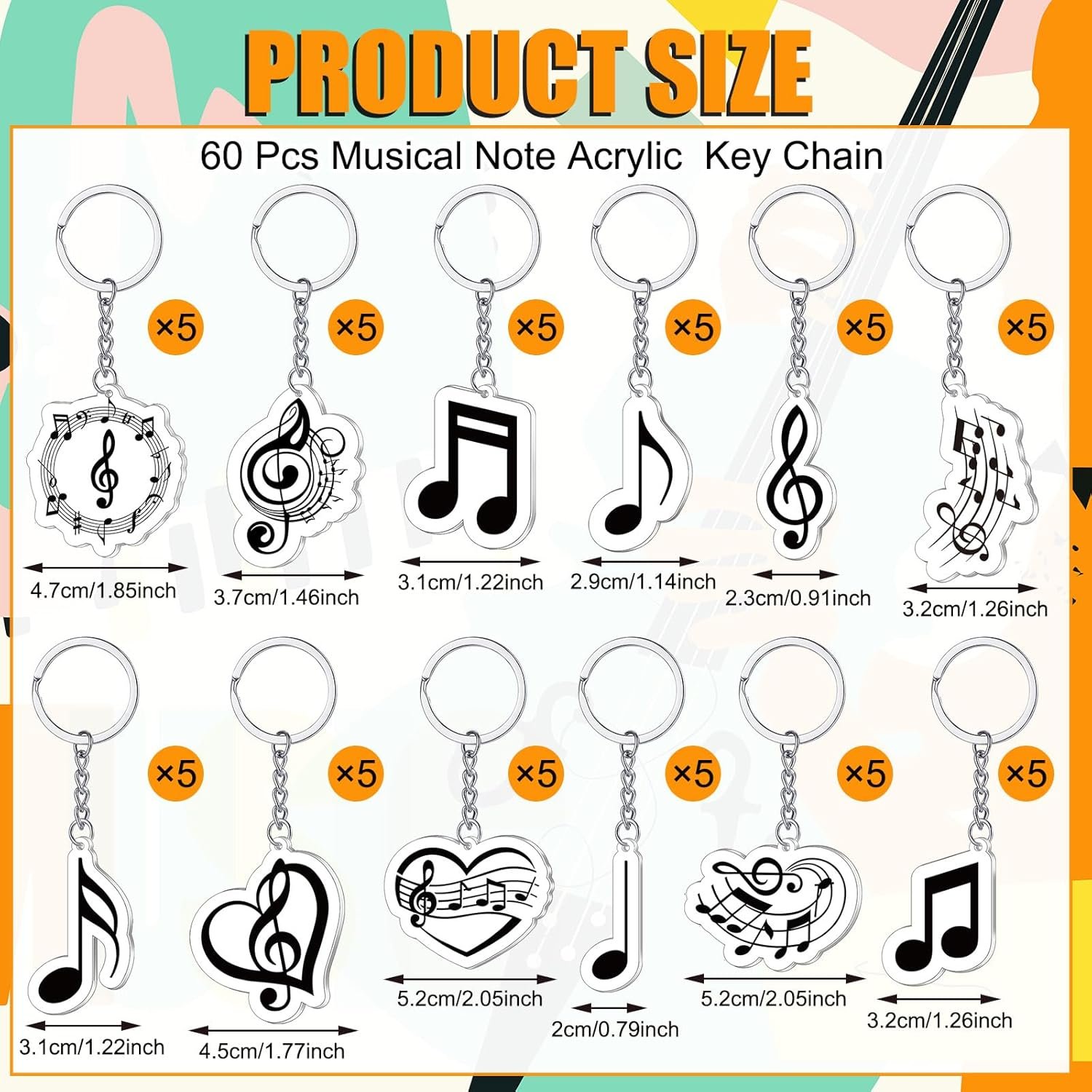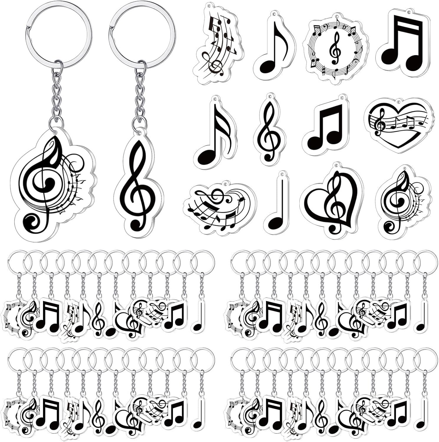 Sasylvia 60 Pcs Musical Note Key Chain Welcome Back to School Music Keychain Musical Party Favors Choir Gifts Clef Key Ring Trinket Keyfob for Students Music Theme Party Decoration Supplies