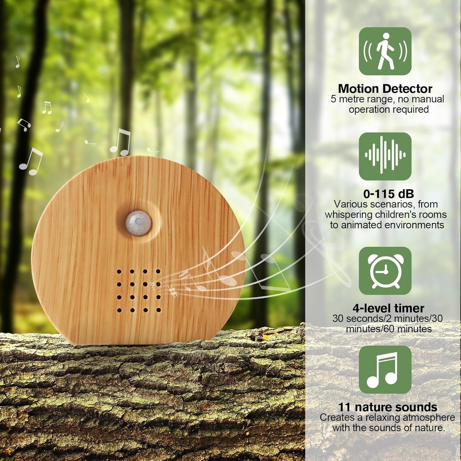 Singing Bird Box,White Noise Nature Sound Box with Motion Sensor,Portable Birds Chirping with Timer,11 Soothing Songs,2 Playback Modes,Sound Box Containing Birdsong,Brook Whispering