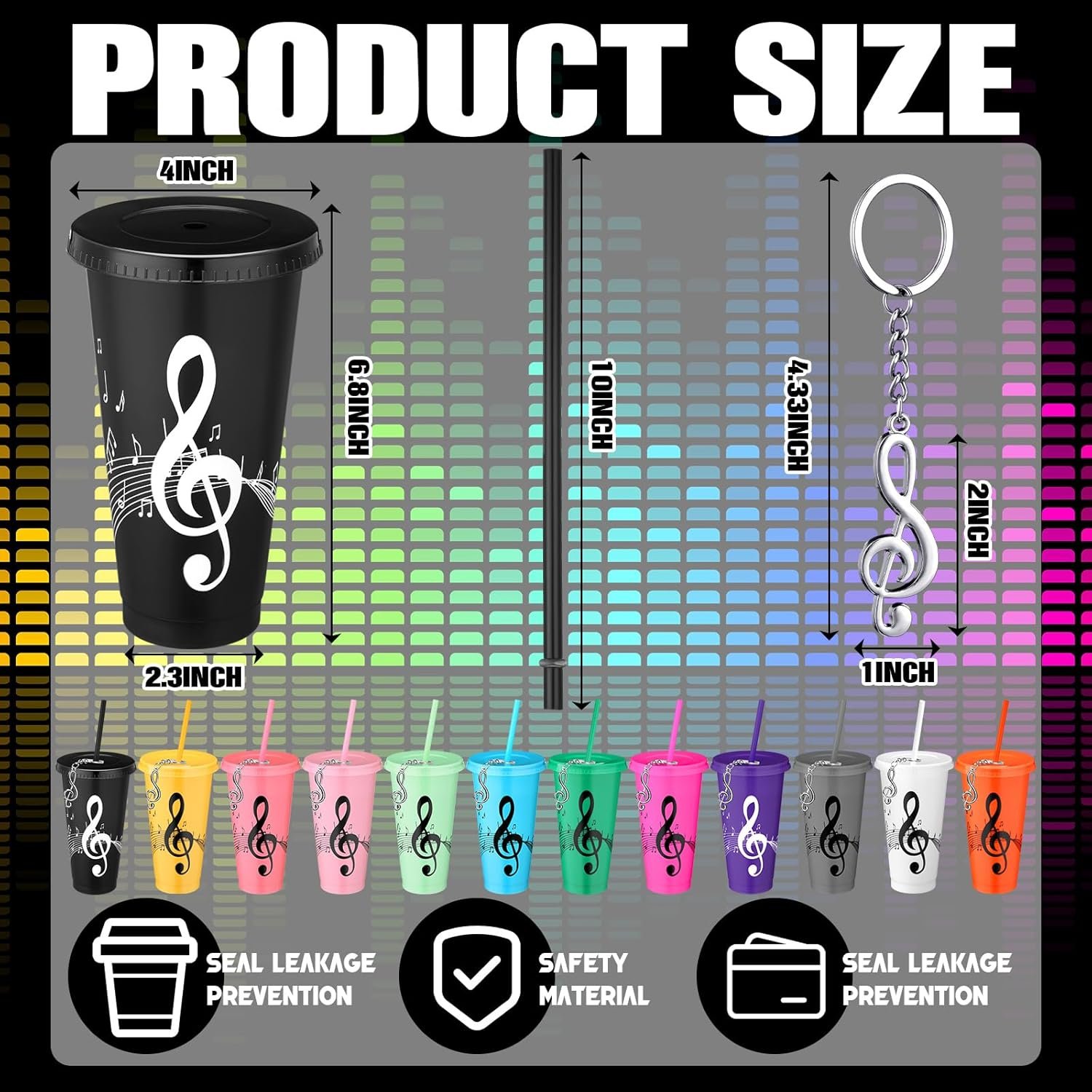 Skylety 12 Sets Music Themed Gifts Musical Note Tumbler Cups Bulk 24 oz Reusable Musical Note Plastic Tumbler with Straw and Lid Keychain Gifts for Music Lover Party Favor(Multicolor)