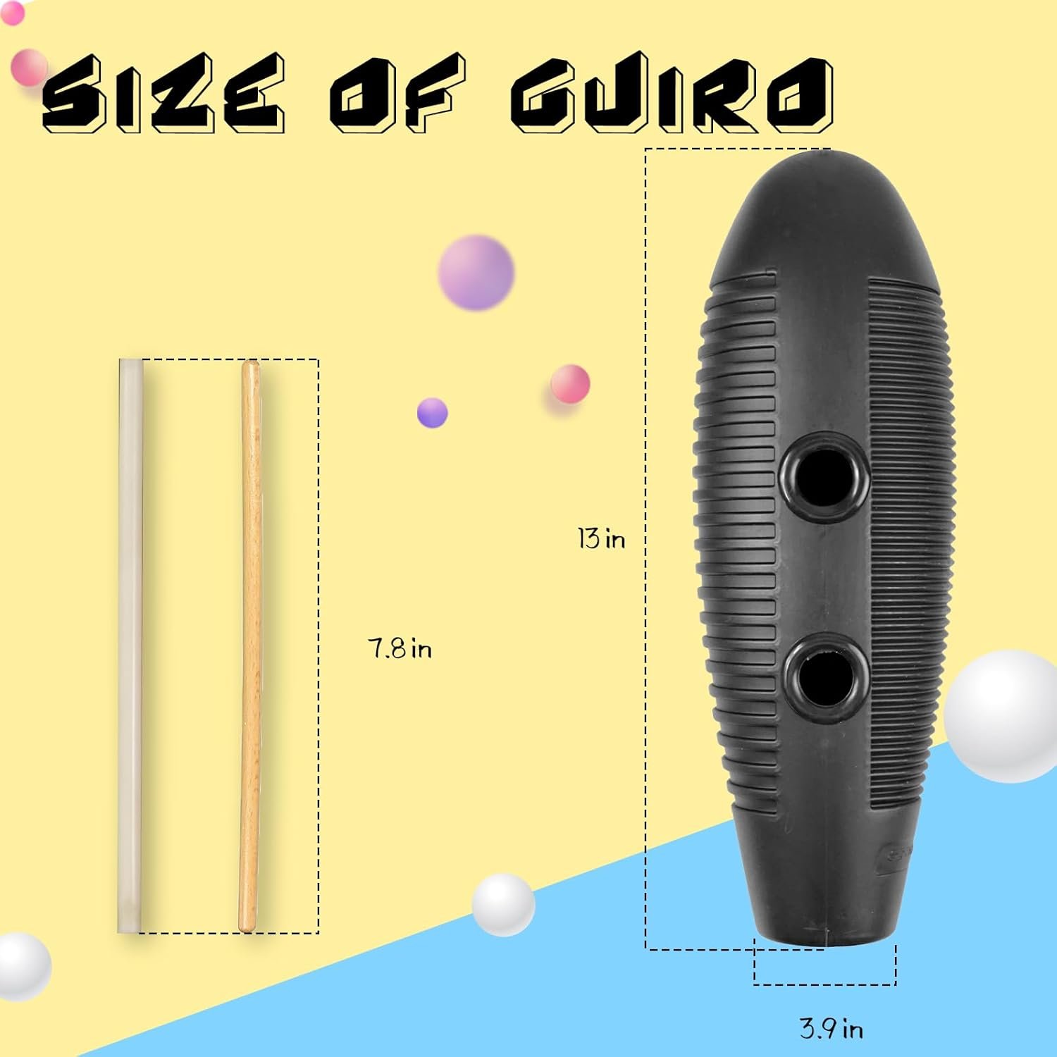 Soulmate Fish Guiro Instrument 3.9″ x 13″ Latin Percussion with 2 Scrapers, Professional Guiro Shaker for Beginners, Live Performances, and Band Accompaniment, Black