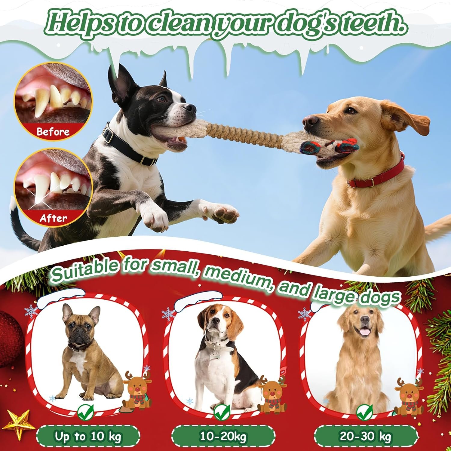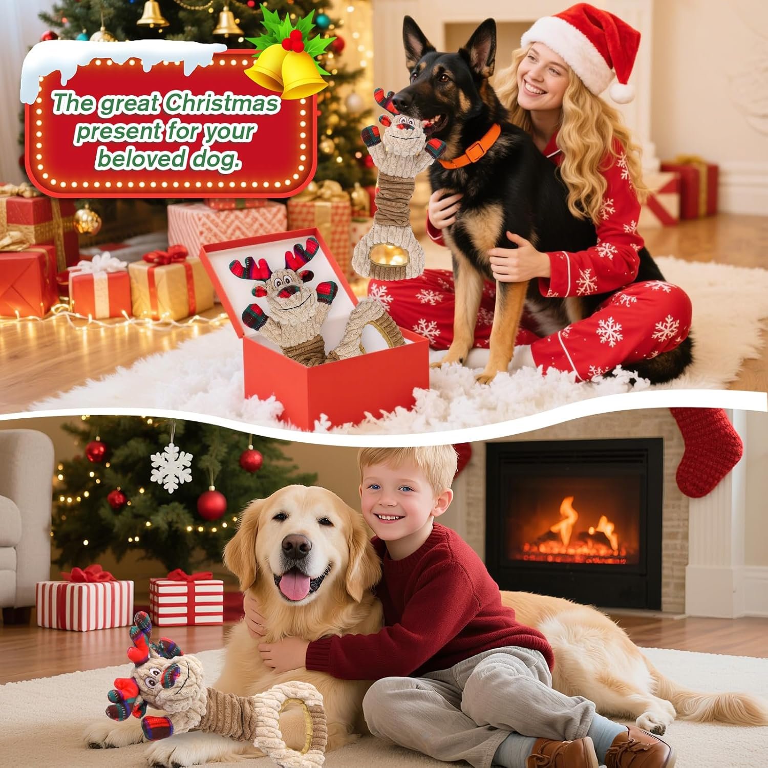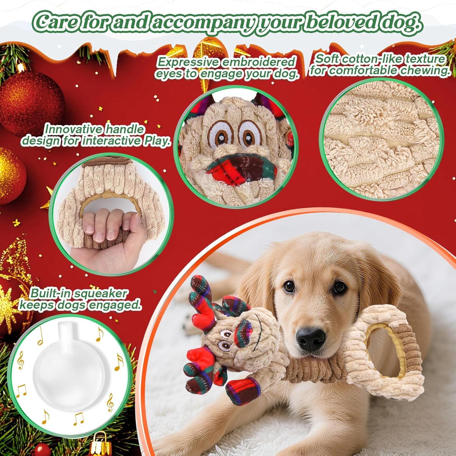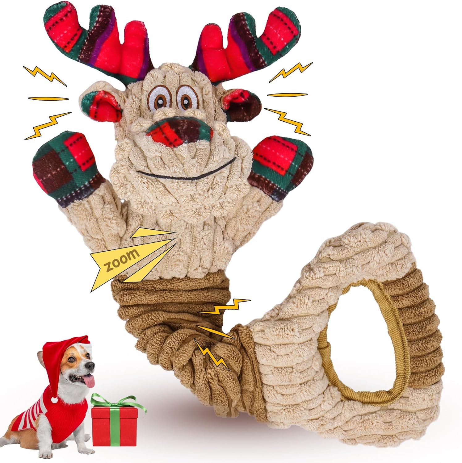 Squeaky Christmas Dog Toys, Interactive Dog Toys to Keep Them Busy & Ease Anxiety, Plush Puppy Toys & Interesting Tug of War Dog Chew Toys for Large and Small Dogs.