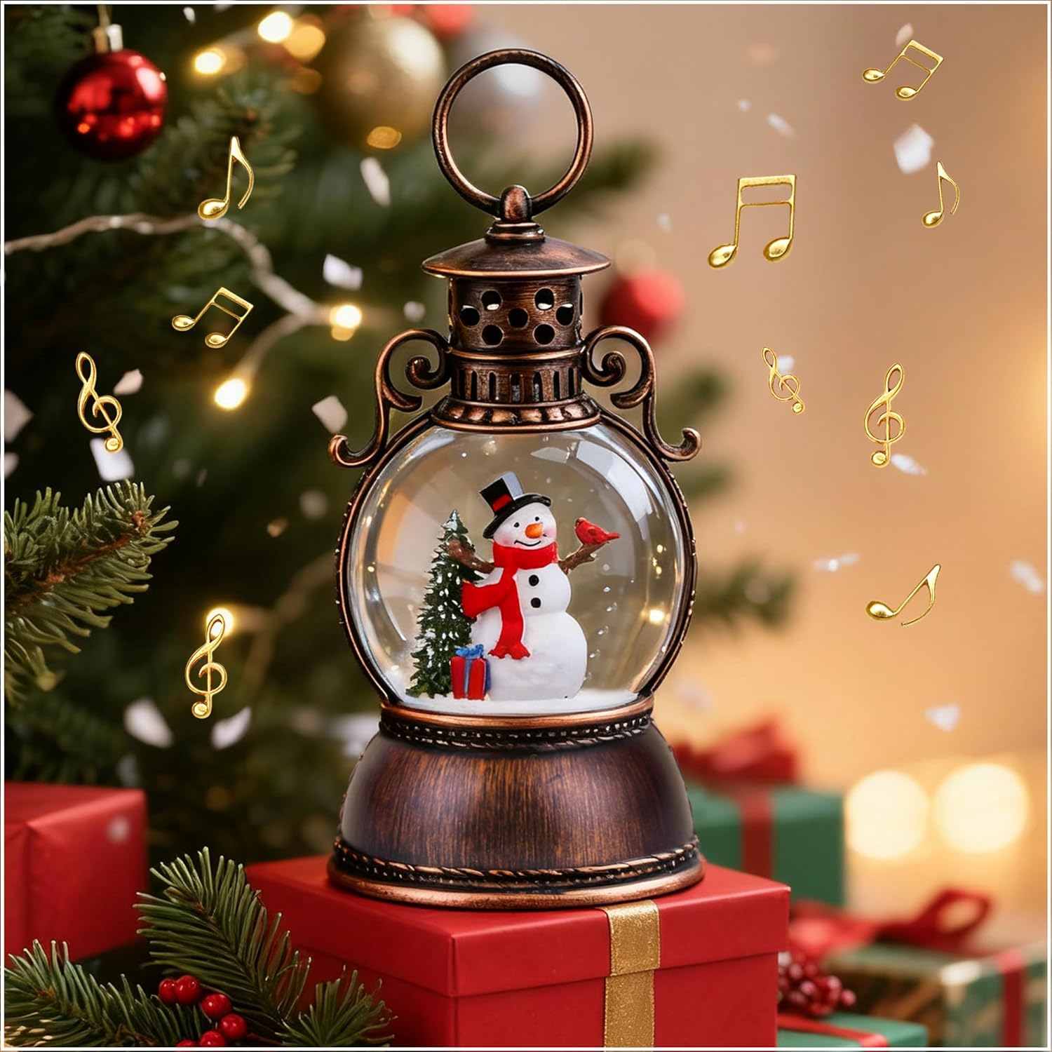 Christmas Snow Globes, Snowman Snow Globe Lantern, Christmas Music Box with 8 Songs & 6h Timer, USB Powered & Battery Operated Musical Snow Globe for Indoor Decoration and Gift