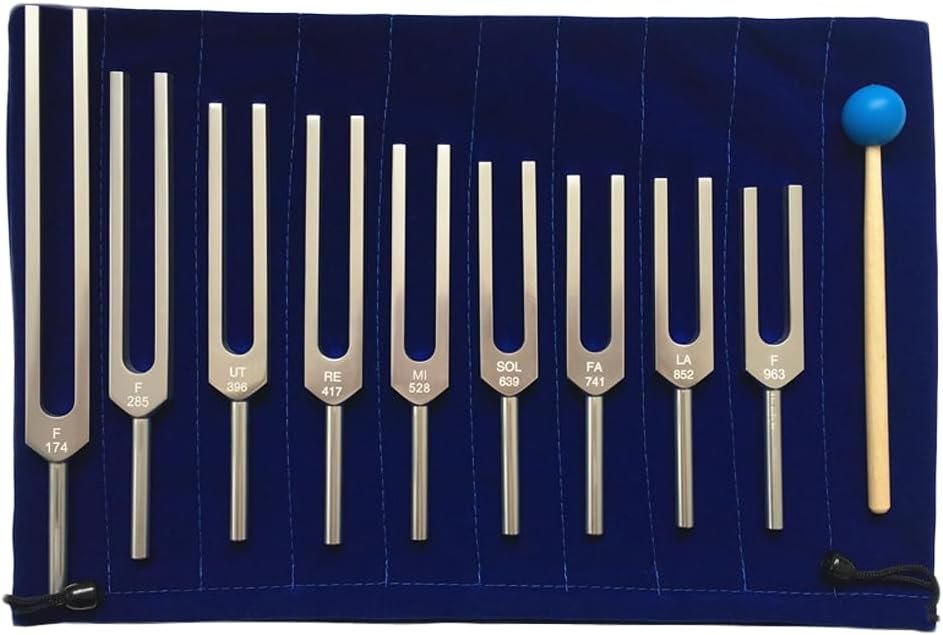 Tuning Fork Sets of 9, Sound Therapy Vibration Aids for Relif Pain, Healing, Chakra, Reduce Stress Anxiety, F174,F285,UT396,RE417,MI528,FA639,SOL741,LA852,F963