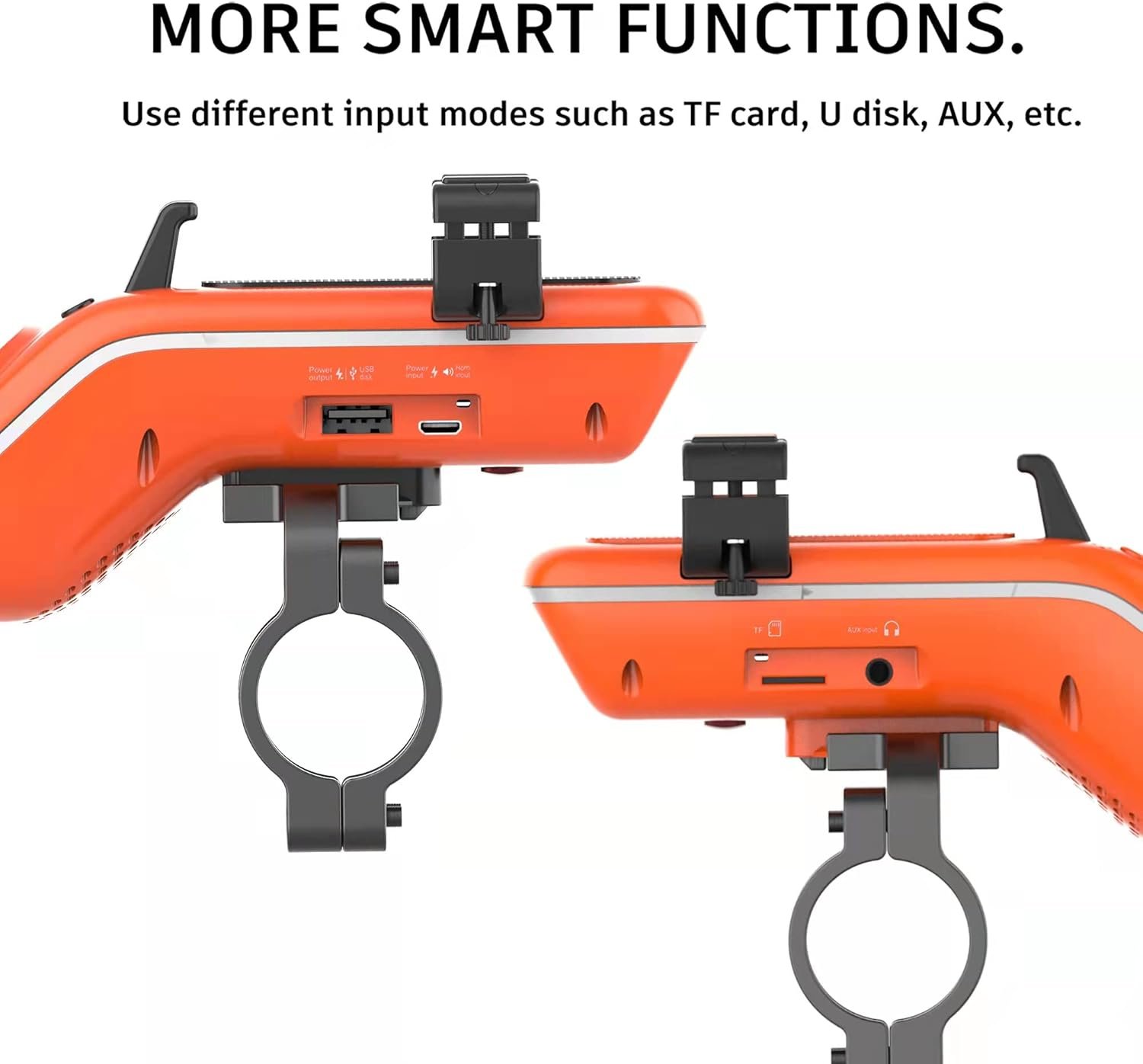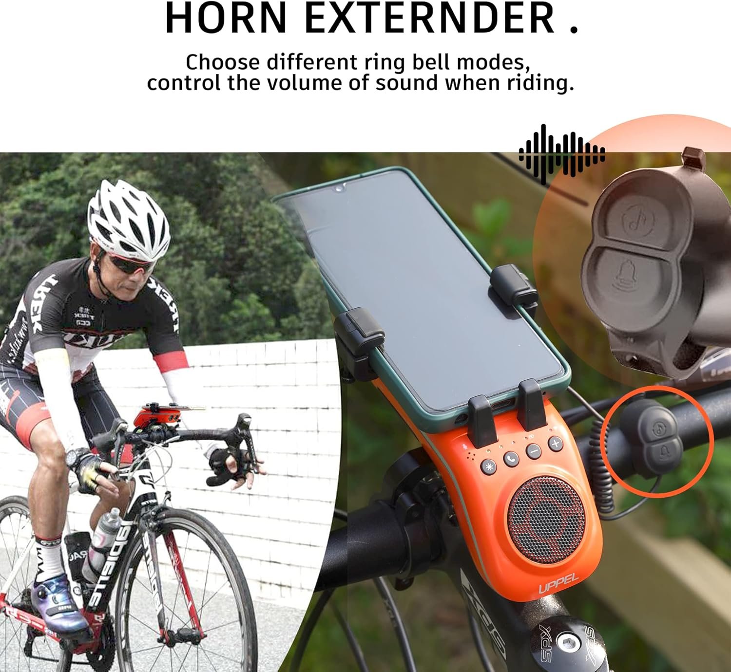 UPPEL Bluetooth Speaker Bicycle, Multifunctional Bike Phone Holder 10-in-1- LED Light – Power Bank – Bike Horn – Microphone – Ideal for Road & Mountain Bike – Extreme & Casual Cycling-Orange