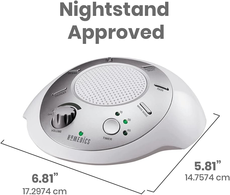 White Noise Sound Machine | Portable Sleep Therapy for Home, Office, Baby & Travel | 6 Relaxing & Soothing Nature Sounds, Battery or Adapter Charging Options, Auto-Off Timer | HoMedics