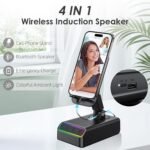 Wireless Induction Speaker, 5-in-1 Cell Phone Stand with Wireless Bluetooth Speaker for iPhone Android Phone Speakers Amplifier with Colorful Ambient Light, Gift for Men Women(Black)