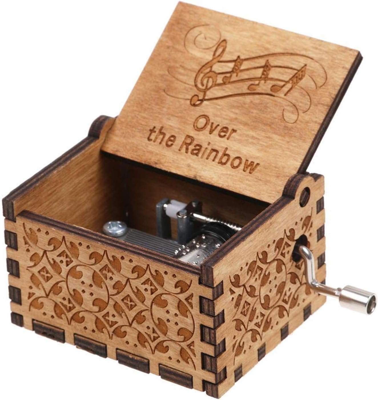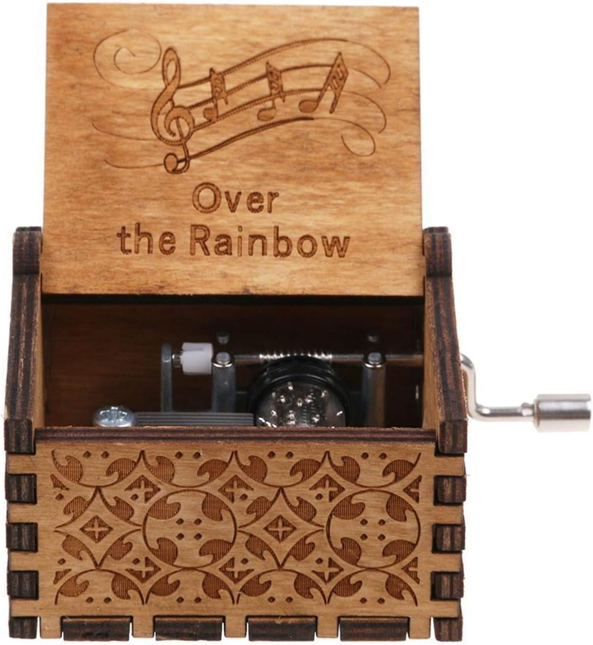 Wooden Hand Crank Rainbow Music Box, Classic Vintage Wood Handmade Over The Rainbow Musical Boxes Best Gift for Kids,Friends (Over The Rainbow)